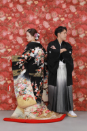 ご新郎様のソロショット!深紅のお花が描かれた存在感のある背景ですが、ライトを当ててご新郎様の影を取り入れることでクールな印象のお写真になりました!
