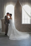 クールなご新郎様に後ろから優しく抱きつくご新婦様がなんとも可愛いショットです。