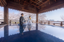 ライトアップされた夜桜がお二人を包みます