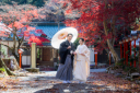 色打掛に羽織替えをされ正座ポーズです♬新年のご挨拶の年賀状に使っていただけそうな和装ならでは。。。の写真となりました