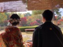 昭和の雰囲気が残る館内・・・赤いじゅうたんと階段を背景に洋装姿がお似合いのお二人です