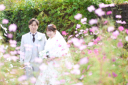 花々に囲まれてお二人トータルコーディネートです