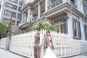 いつもと違う雰囲気のお二人の顔合わせにスタッフもドキドキ♡優しい色味のタキシードとドレスを合わせて、雰囲気もぴったりですね♪さあ、ロケへ出発です☆