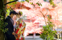 番傘を上手に使いお二人見つめあって可愛いですね♡お着物もばっちり着こなしています!