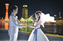 美しい神戸の夜景をバックに撮るならハーバランドをオススメします!新婦様はウエディングドレスにチェンジし、プロポーズのシーンを撮影♪