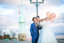 風船に囲まれて幸せそうなおふたり♡ラブラブ感たっっぷりですね。