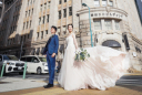 並んで横断歩道を渡っているかのようなショット!♡本当に居留地の街並が似合う素敵なお二人♡