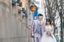 横断歩道でファサッッッのショット♡キラキラとお二人とても似合っています♡とても素敵なお二人でした♡お二人ともお幸せに♡♡