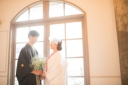 時には日の光を借りてしっとりフォトもお撮りします♪光が差し込む窓の風景に立つお2人の後ろ姿。雰囲気があって素敵です。