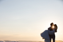 お持ち込みのブーケで夕日をバックに。