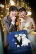 とても嬉しそうなご新婦様と、ほっぺにキスをされて照れているご新郎様♡