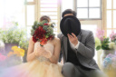 笑顔の写真の中にクラシカルなお写真があると目を惹きますね。バックショットで雰囲気を大人っぽくしてみてもいいですね♪