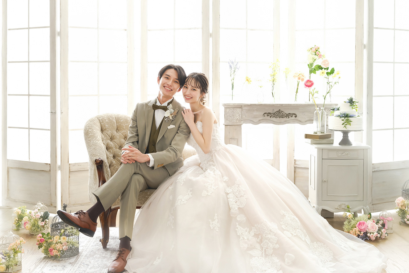 大切な家族だからこそ二人の新しい門出はペットも一緒に!個室スタジオで1組ずつの貸切撮影なのでリラックスした雰囲気の中で撮影を楽しんでいただけます。