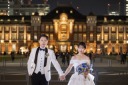 夜のライトアップされた東京駅って、ロマンティックで素敵♡さらにおふたりが愛を誓っているお姿がとても美しいです♡