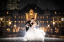 ご新郎様の蝶ネクタイとブーケの色を合わせて統一感を♪ライトアップした東京駅によく映えます!