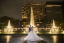 トワイライトのお時間帯から、夜の撮影をスタート!ドレスもヘアスタイルも、ブーケも夜仕様に。