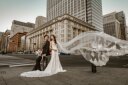 夜の東京駅でのラストショット。いつものおふたりとは雰囲気がガラッと変わり、夜ならではの撮影に。