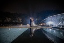 ビルが立ち並ぶ広い行幸通りで、お手を取ってのショットです。昼のウォーキングショットとは違う壮大な一枚です!