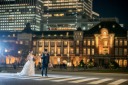 王道ロケーションの東京駅で舞い上がる抱っこショットは、輝くような美しさです!