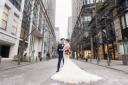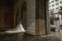 VERAWANGリーゼルのトレーンが豪華にひらめく抱っこショットをライトアップされた東京駅前で♪