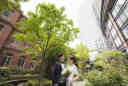 見つめ合って歩いているようなショット東京駅舎の光とおふたりがお洒落に映されています☆