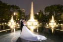 ロングベールを頭に着けて丸く広げた王道の一枚です。国立博物館との調和が見事です…!