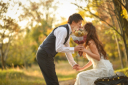 テトラポットの上での撮影です。日が落ちて来て、夕方の海の感じがますます出てきました。トレーンを持つ新郎様がなんだか可愛い写真です。