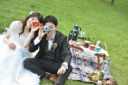 お気に入りの帽子での撮影ですが、これやりたかったんです、私が・・・。やってくれる優しい二人。新郎様は持参してくれていたお花にしました。