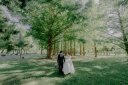ご新婦様ソロショット、緑をバックに開放的な空間でのポージング*