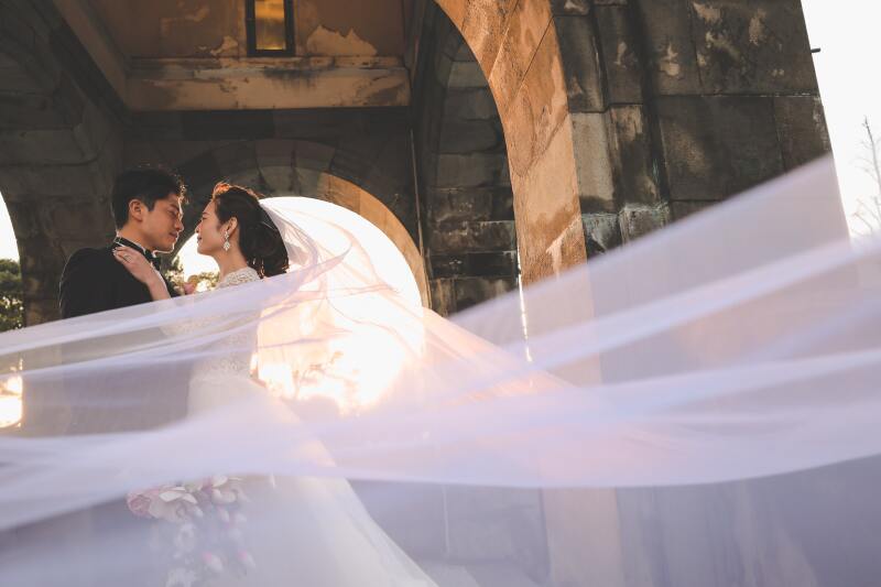 人物・背景WDドレス/タキシード/基本小物/新婦様ヘアメイク/美容アテンダント/造花ブーケ・ブートニア /ベール/靴/ワイシャツ/蝶タイ ※その他、ドレスアップグレード等追加料金なし ※サロンから現地への交通費はお客様負担となります