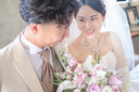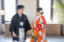 色打掛でのかっちりとした立ち姿も。ミライザ大阪城館内から見える自然のナイトの景色がロマンチックな雰囲気も。