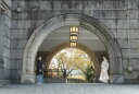ミライザ大阪城のエントランスは中世ヨーロッパの古城の雰囲気と大阪城公園の自然の美しい空間はウェルカムボードにしたくなる1枚です