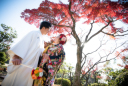 【公園敷地内】緑葉と自然光がマッチし、締まった衣装での撮影も明るく柔らかな仕上がりに。