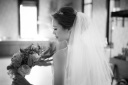 水面に映った大阪城を背景に、庭園でのショット。お着物の美しい柄もしっかり残して。