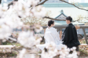 さあ、ご準備ができましたらご新郎様のエスコートで撮影開始です。春の木漏れ日と桜にも負けないおふたりの笑顔が咲きます