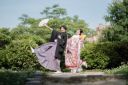 おふたりの大切なわんちゃんたちも参加し、しあわせな瞬間を残しますおふたりと同じ和装を着て、なんだか嬉しそう♪