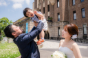 大阪城と緑に囲まれ、フォトウェディングのスタートを飾るすばらしいショット。