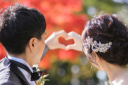 おふたりのシルエットの背景に秋の美しい紅葉。季節によって表情を変える1枚を館内からも撮影できるのは嬉しいポイントのひとつ。