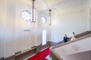 ミライザ大阪城で撮影するならやはり『赤絨毯の大階段』ウェディングドレスとはイメージが子となるシックなグレーのカラードレスも魅力的です