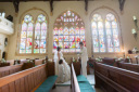 子供たちがどれだけ楽しんでくれるか、ステンドグラスをきれいに写るように(曇りだったので)相談しました。