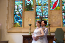 本物のアンティーク品とステンドグラスが輝き、より一層おふたりを美しく魅せてくれます。何度も見返したくなるお写真に。
