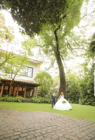 新郎はもともと写真が苦手で、カメラを向けられると表情が固くなってしまうと言っていましたが、とても自然な表情を撮影して下さいました!背景を広く写したショットは、おしゃれな絵のような写真にもなっていて素敵でした。