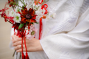 この日の新婦様は可愛らしいレースのドレスを選ばれました。新婦様の可憐なイメージにぴったりのドレスとブーケ。