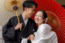 番傘を使って和装ならではのお写真も^^ご新婦様を見るご新郎様の表情が優しい…!