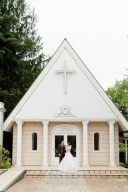 指輪交換シーン。公園にあるシンボルをフレーム代わりにして。