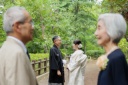 ミモザの前でもフォーマルな写真を撮ります!絵本の中に迷い込んだような雰囲気の出るミモザの背景もあるので気になる方はぜひ!