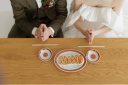 職場の方からいただい書と一緒に撮影!とっても綺麗な字の書をお二人の顔にはめてみました^^