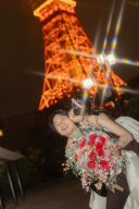 台紙に入るようなかっちりなポーズも撮影します!カラードレスとブーケの色味もバッチリですよね^^