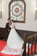 カジュアルなポーズがお似合いのおふたり^^韓国風なご新婦様のスタイリングも素敵です!