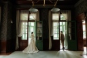 静かに腰掛けるご新郎様の一枚穏やかな表情が素敵です。特別な一日の始まりを感じさせる、落ち着いた瞬間です